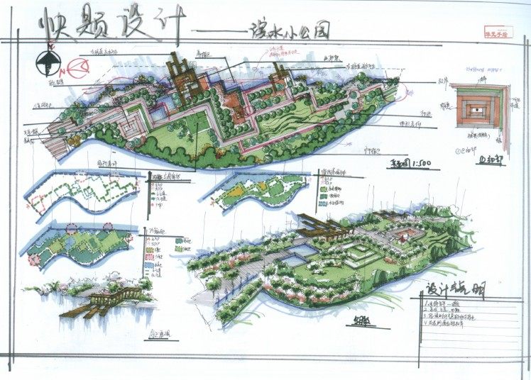 濱水景觀,校園景觀,綠地景觀規(guī)劃等等手繪快題作品