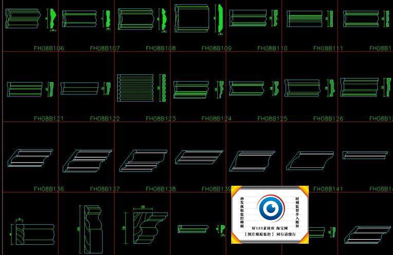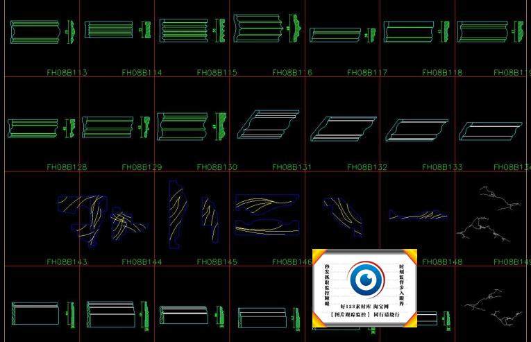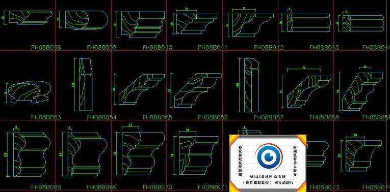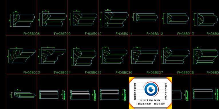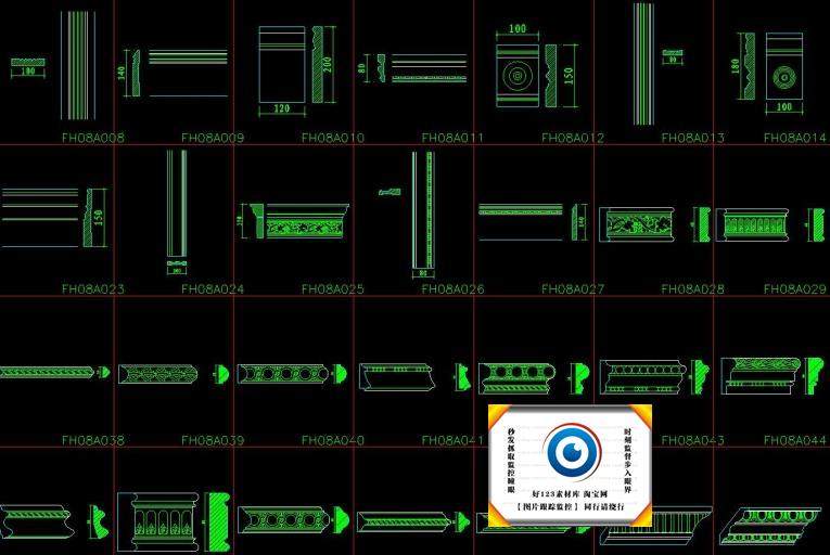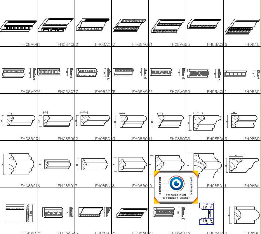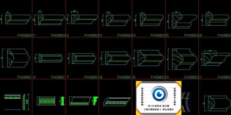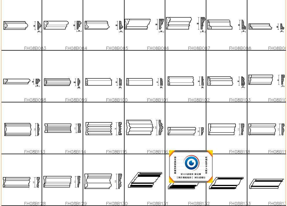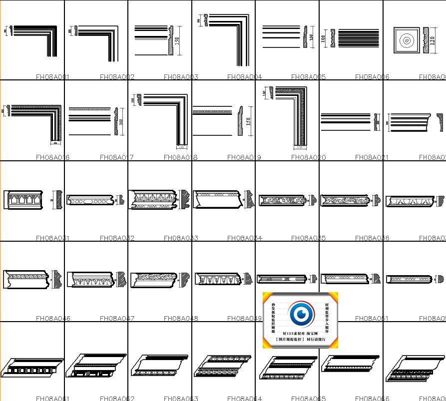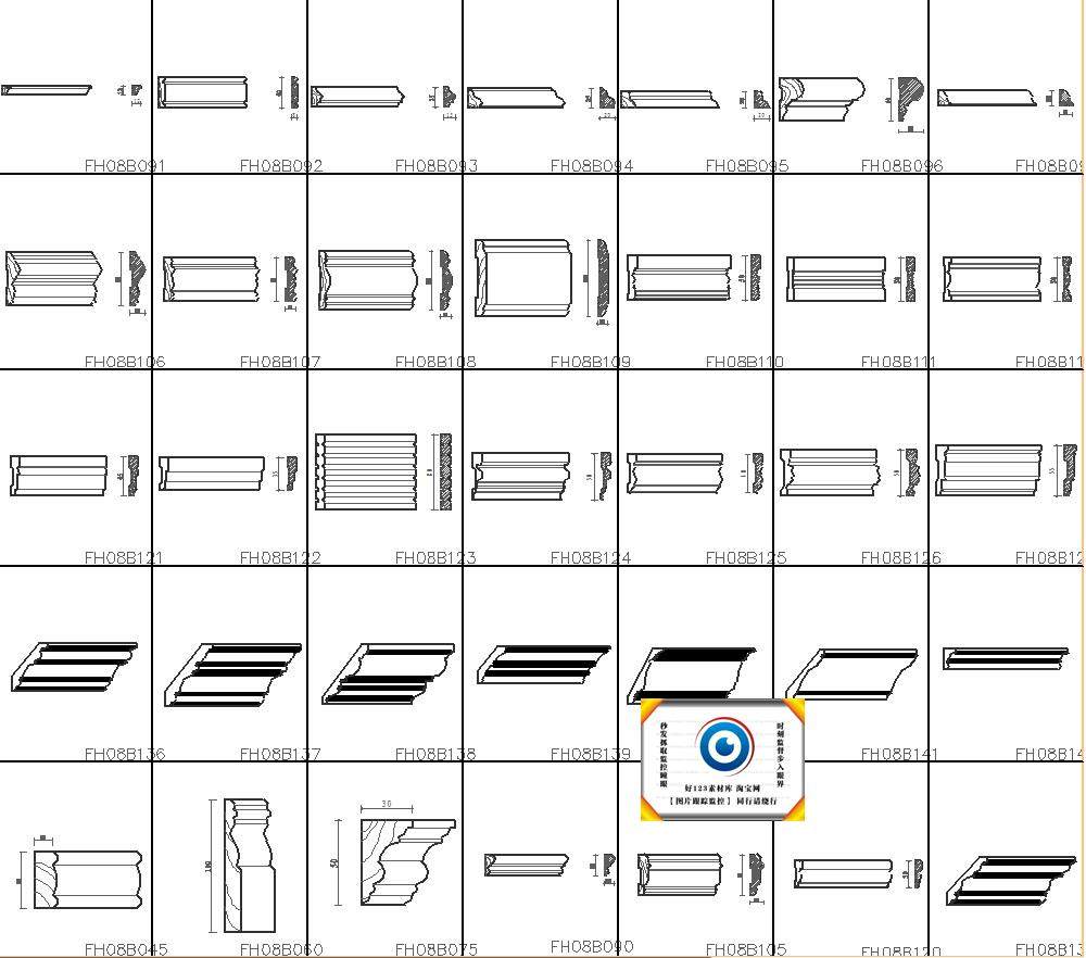 中式歐式線條CAD截面詳圖圖庫雕花門窗套角線石膏線施工圖塊330款價格行情