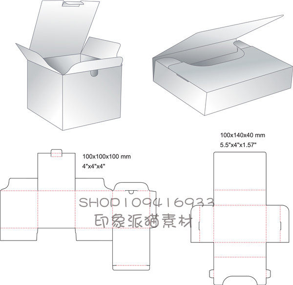 矢量設(shè)計(jì)素材 紙盒紙袋包裝盒尺寸展開圖mockuop模板 EPS格式推廣熱賣行情