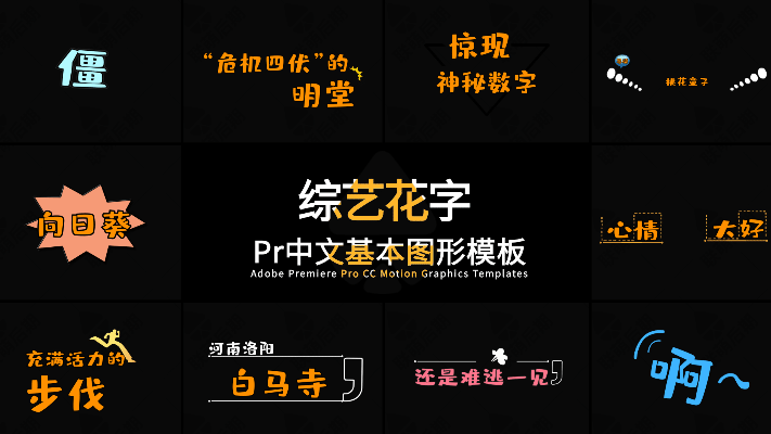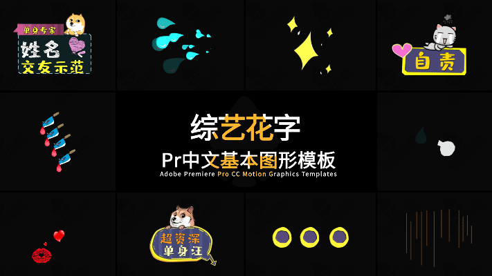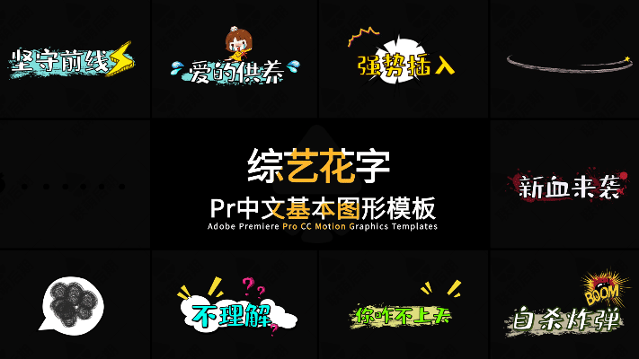315+pr模板vlog街訪綜藝真人秀動畫可愛表情字幕預設卡通花字對話