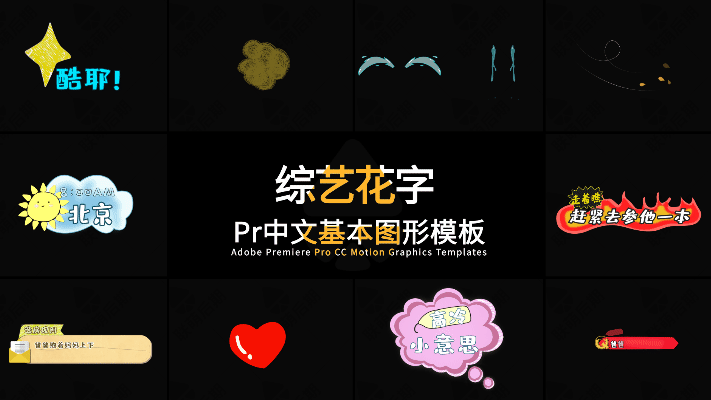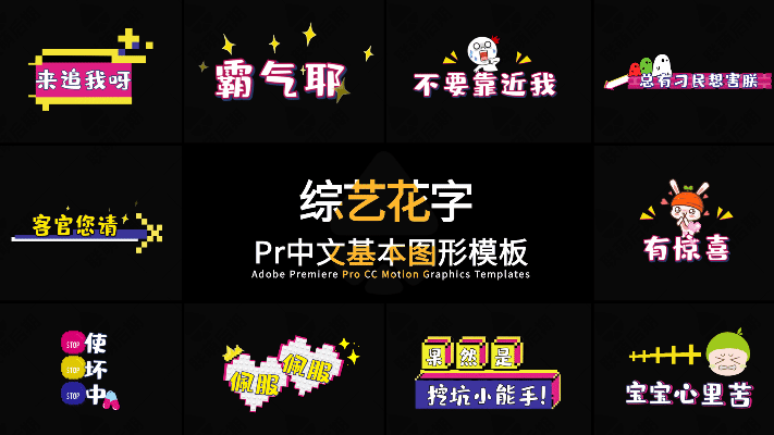 315+pr模板vlog街訪綜藝真人秀動畫可愛表情字幕預設卡通花字對話價格行情