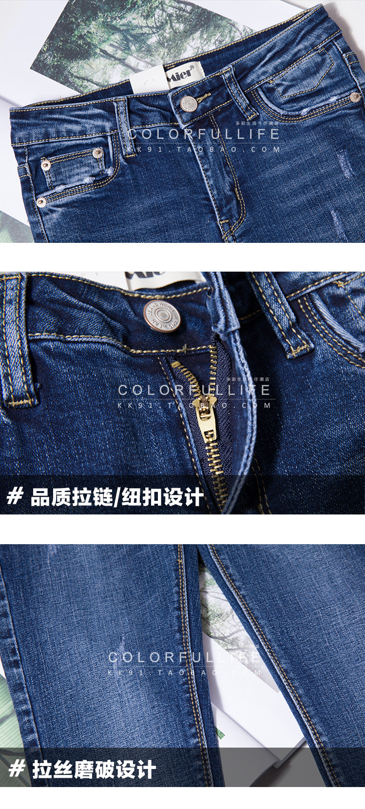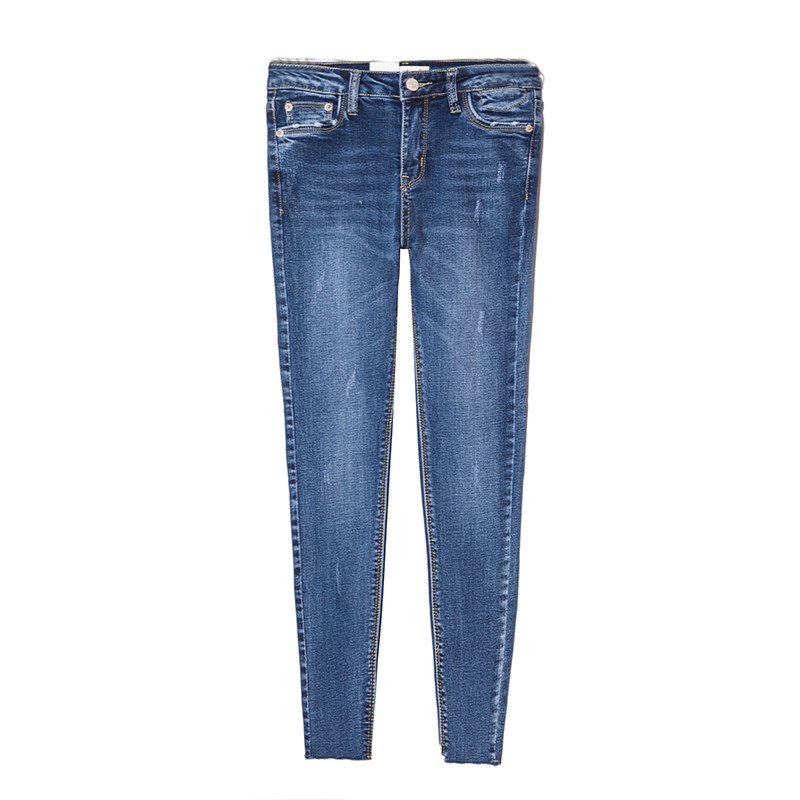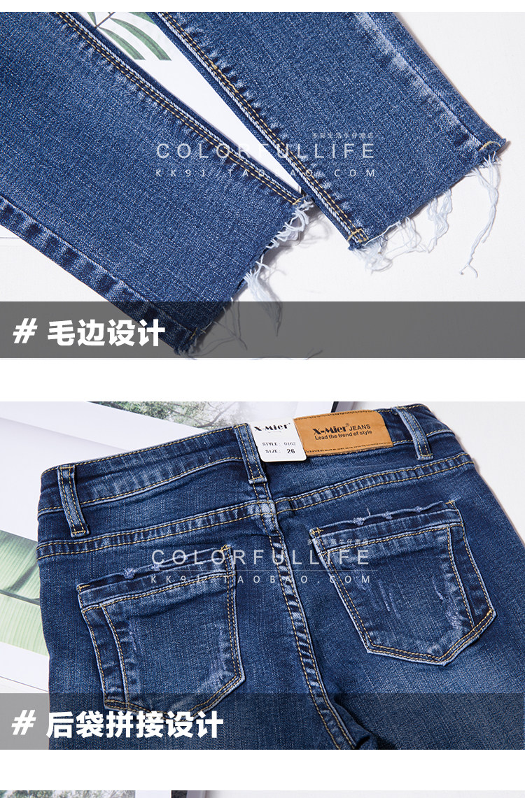 2019春秋新款韓版顯瘦chic藍(lán)色破洞牛仔褲女九分小腳緊身鉛筆褲推廣熱賣行情