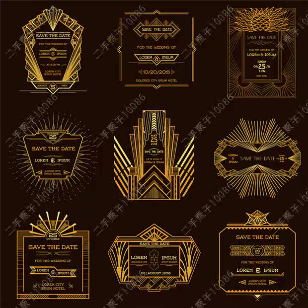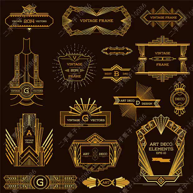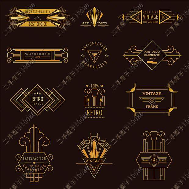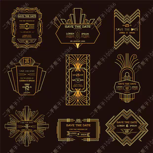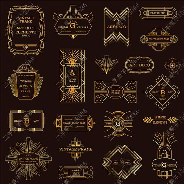 了不起的蓋茨比裝飾藝術(shù)風(fēng)格黑金logo標(biāo)志創(chuàng)意 矢量設(shè)計素材 G683