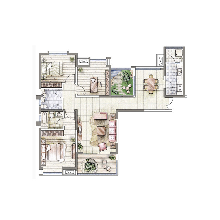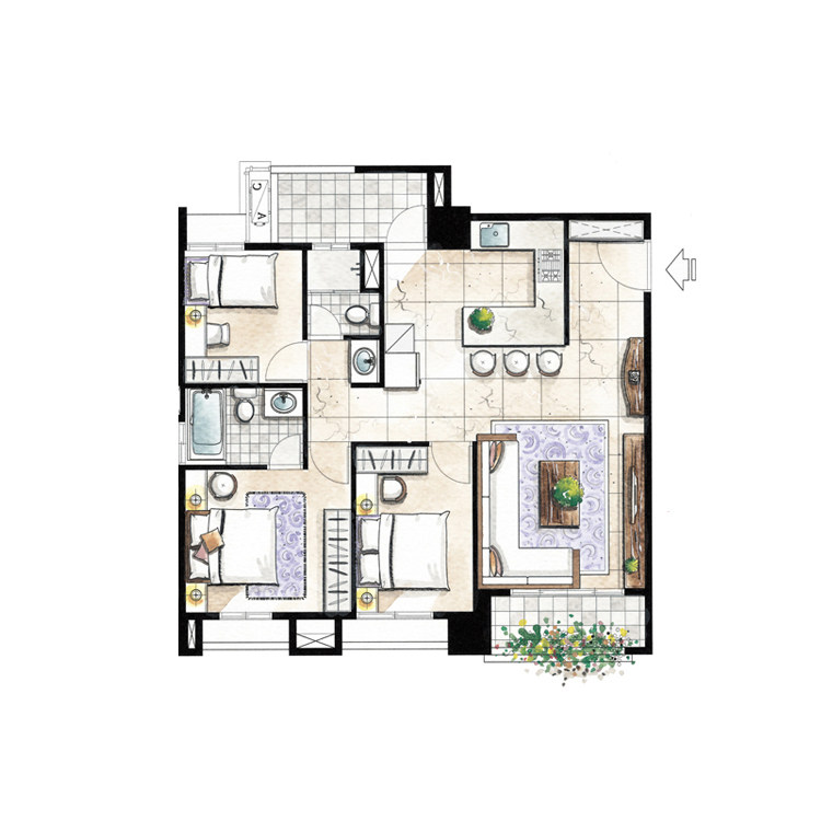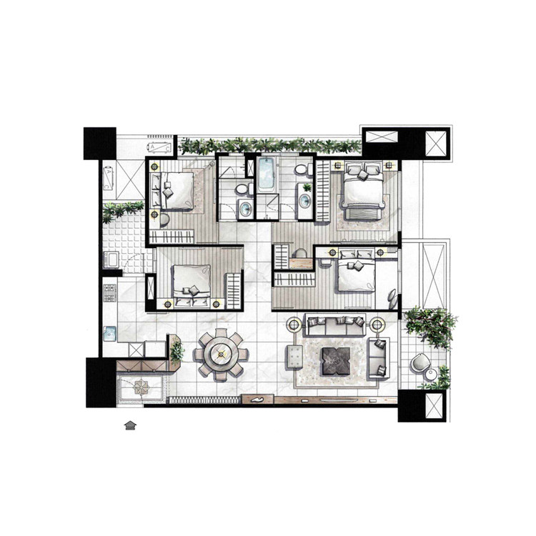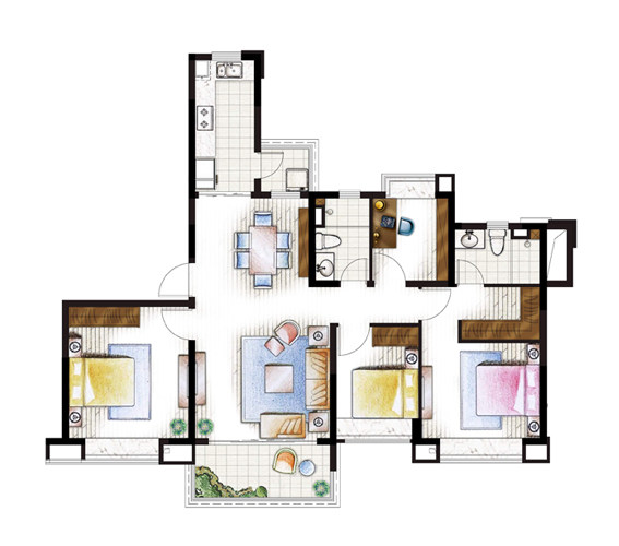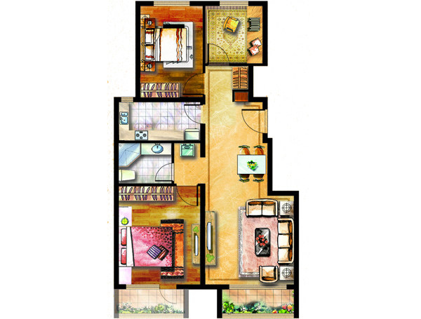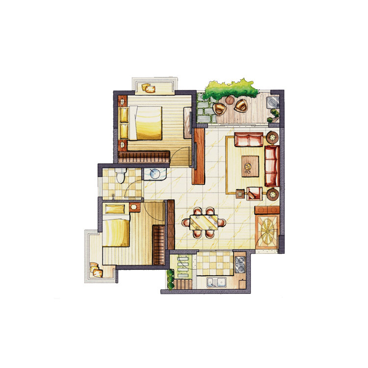 房地產(chǎn)戶型圖渲染彩色平面圖設(shè)計制作室內(nèi)平面圖填色PS制作代畫做