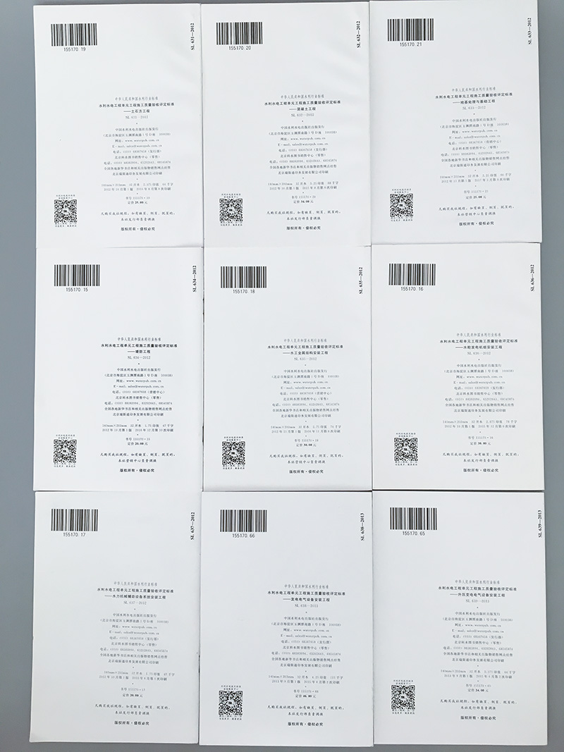 SL631-SL639 水利水電工程單元工程施工質量驗收評定標準 9本 土石方、混凝土、地基處理與基礎、堤防、水工金屬結構安裝、水輪發(fā)價格行情