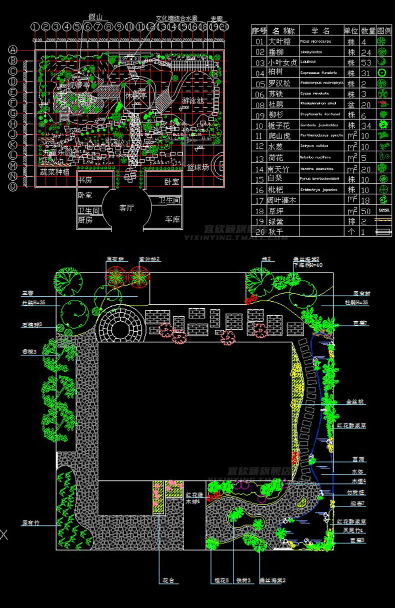 園林景觀施工圖圖例素材別墅花園庭院設(shè)計方案CAD圖庫平面圖植物價格行情