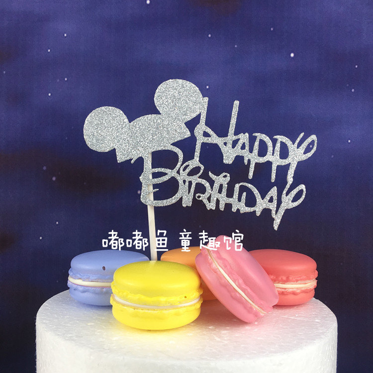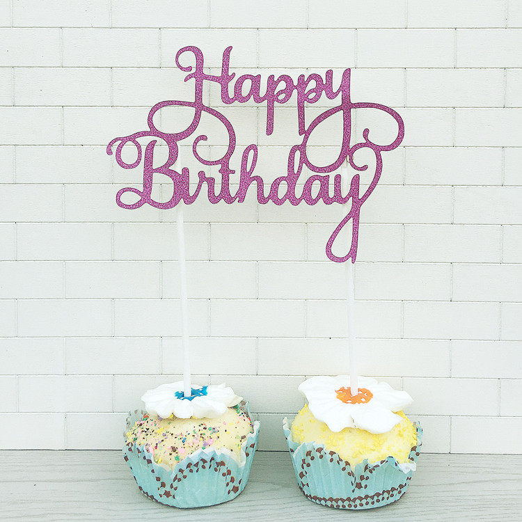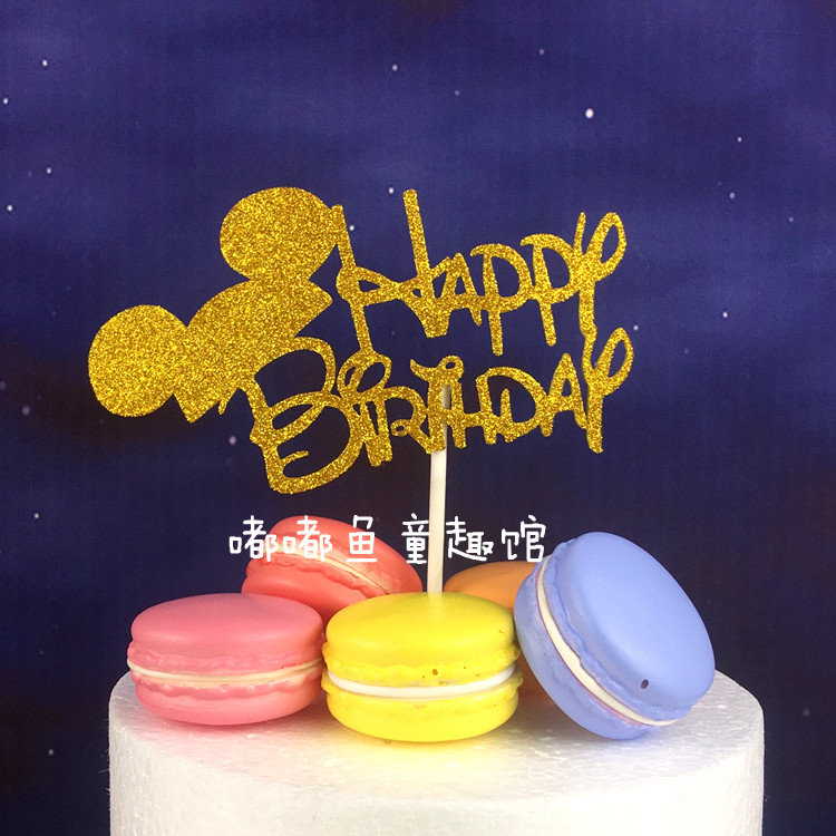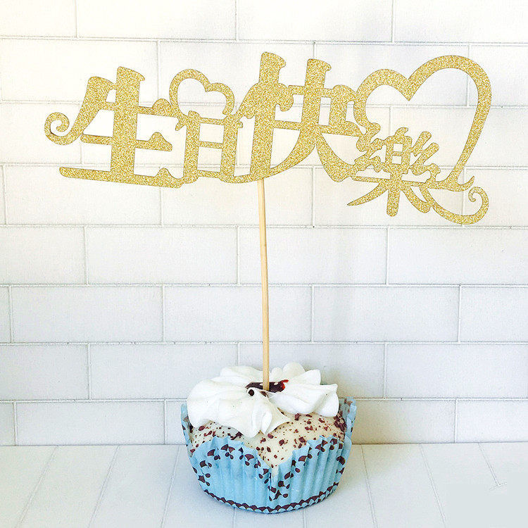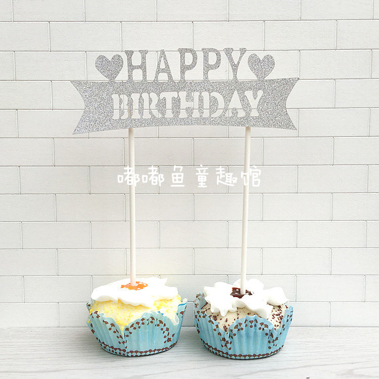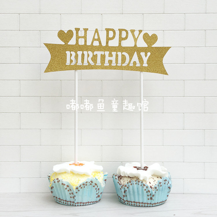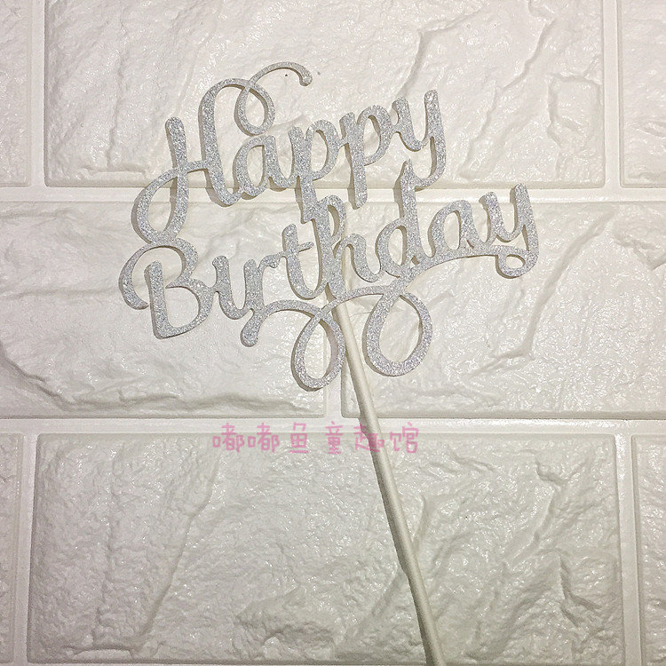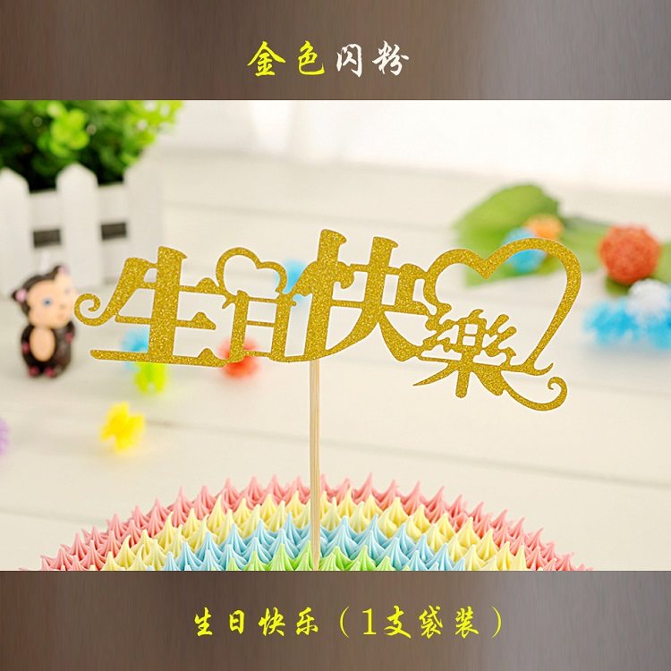 蛋糕裝飾happy birthday插牌璀璨閃亮閃粉生日快樂(lè)100天周歲插片推廣熱賣行情