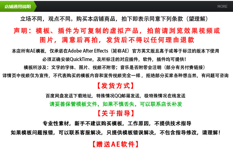 買家必讀:素材、模板、插件為可復(fù)制的虛擬產(chǎn)品,拍前請(qǐng)瀏覽效果視頻或圖片,滿意后再拍,發(fā)貨后不得以任何理由退款,您拍下寶貝付款即視為同意此協(xié)議,謝謝合作!