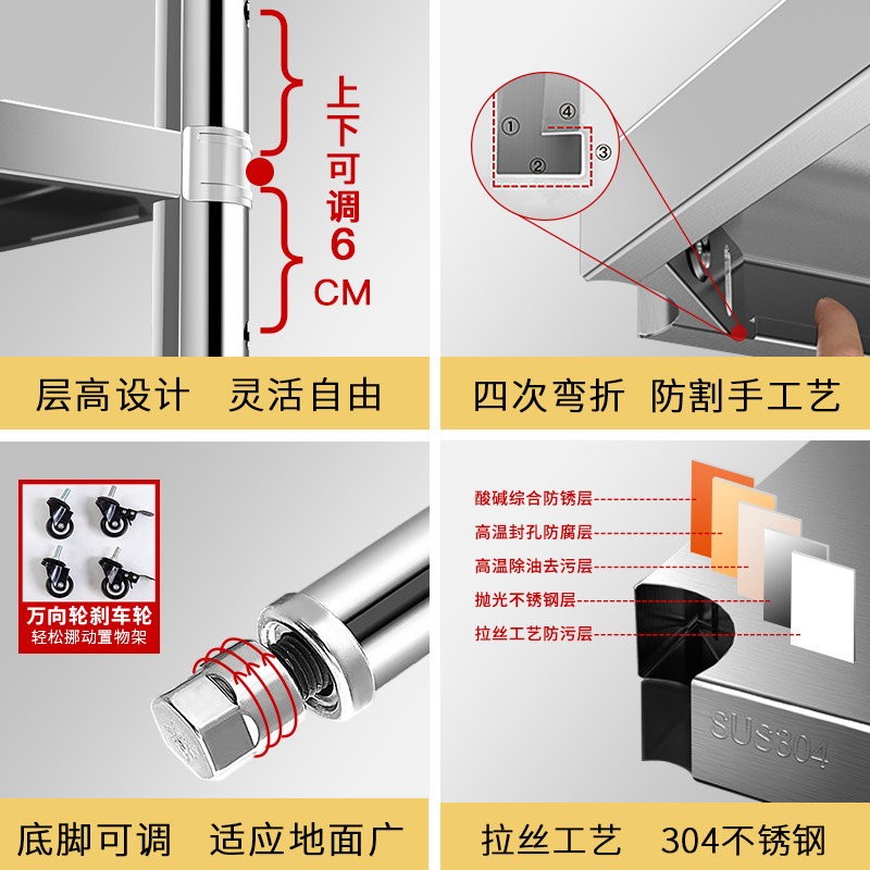 五層304不銹鋼廚房置物架落地5多層特厚微波爐烤箱架家用儲(chǔ)物貨架推廣熱賣行情