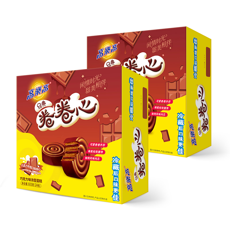 高樂高卷卷心巧克力牛奶口味涂層蛋糕600g*2盒下午茶小零食推廣熱賣行情