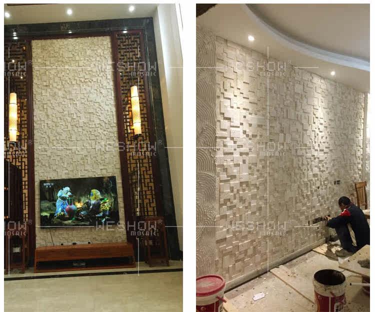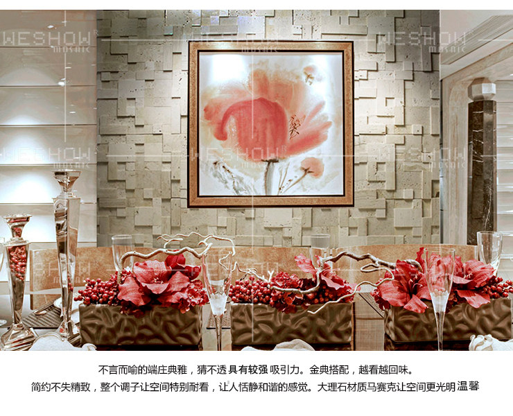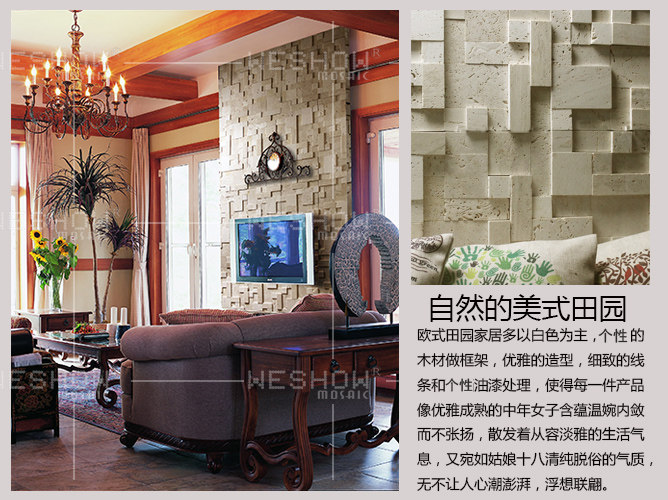 華鑠57洞石馬賽克文化石背景墻天然大理石材馬賽克電視背景墻瓷磚.推廣熱賣(mài)行情