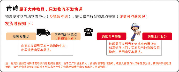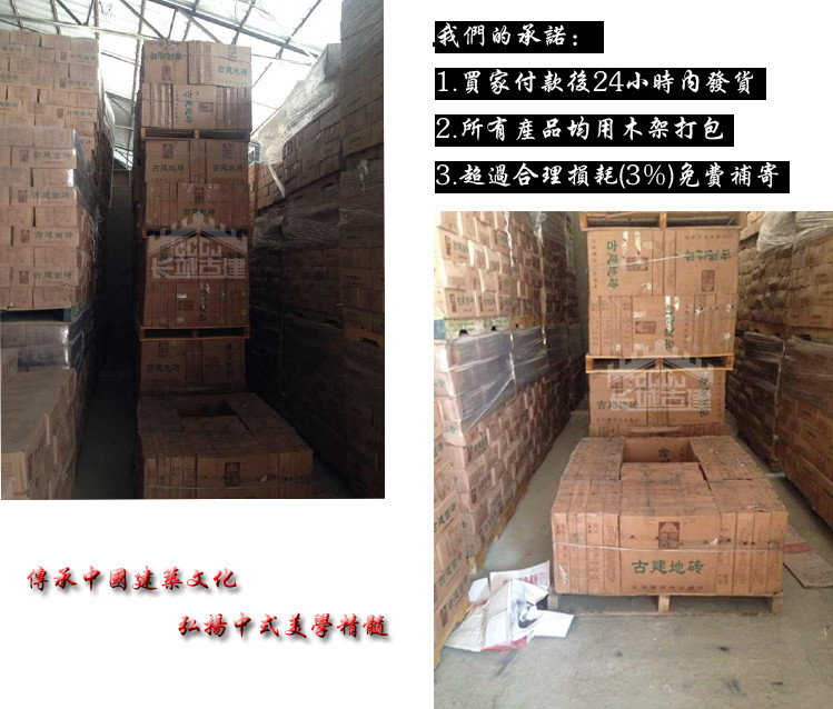運(yùn)輸:古建地磚屬于重貨,只發(fā)物流3平米起發(fā)。物流費(fèi)到物流站提貨。