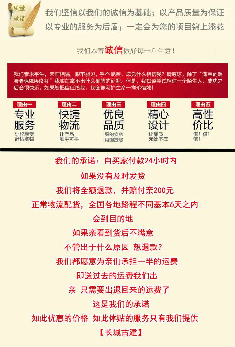 親 我廠所出售的產(chǎn)品保質(zhì)保量!如遇任何產(chǎn)品質(zhì)量問題;我們會很不錯時間先為您提供退換貨服務(wù);并賠償親的經(jīng)濟(jì)損失;服務(wù)到親滿意為止!這是我們的承諾!在此感謝親們長期以來對我廠的信任與支持!感謝您選擇我們!!