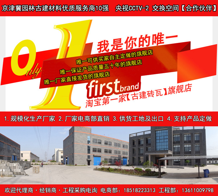 親 歡迎代理商·經(jīng)銷商·工程采購電詢 工程部: 電商部: 【工程特價 質(zhì)量保障】唐景古建青磚十六年品牌·三大工廠聯(lián)營!!!