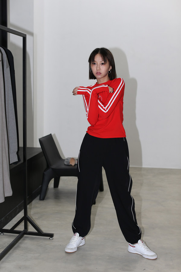 美伢Fuzzykön™細(xì)白邊西裝料運(yùn)動(dòng)收腳褲