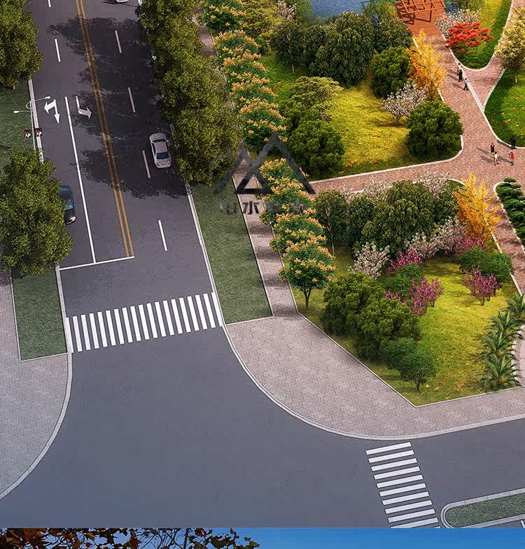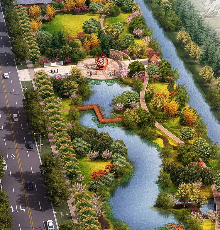 園林景觀PSD效果圖濱河公園廣場景觀設(shè)計(jì)鳥瞰圖透視圖PS分層素材推廣熱賣行情