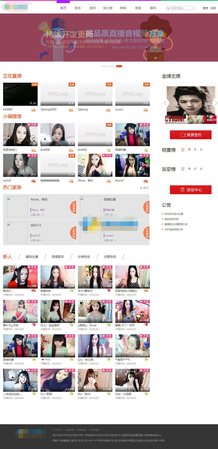 基本功能:家族功能-代理商-很少家主播-會員系統(tǒng)-道具場景-靚號功能等等秀場有的功能都有。