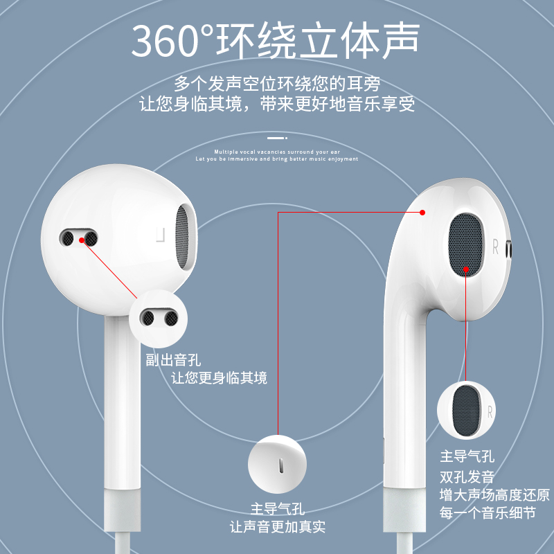 Fanbiya 耳機(jī)原裝正品入耳式適用6s通用iPhone蘋果6華為oppo小米vivo手機(jī)線安卓電腦5s圓孔3.5mm有線控耳塞式