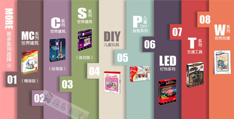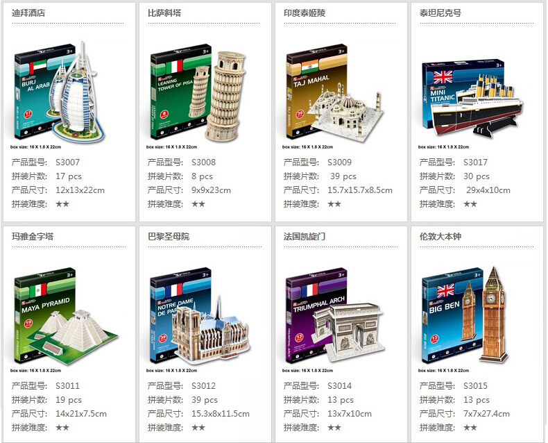 8件包郵樂立方3D立體拼圖紙模兒童玩具迷你世界名氣好建筑模型紙膜推廣熱賣行情