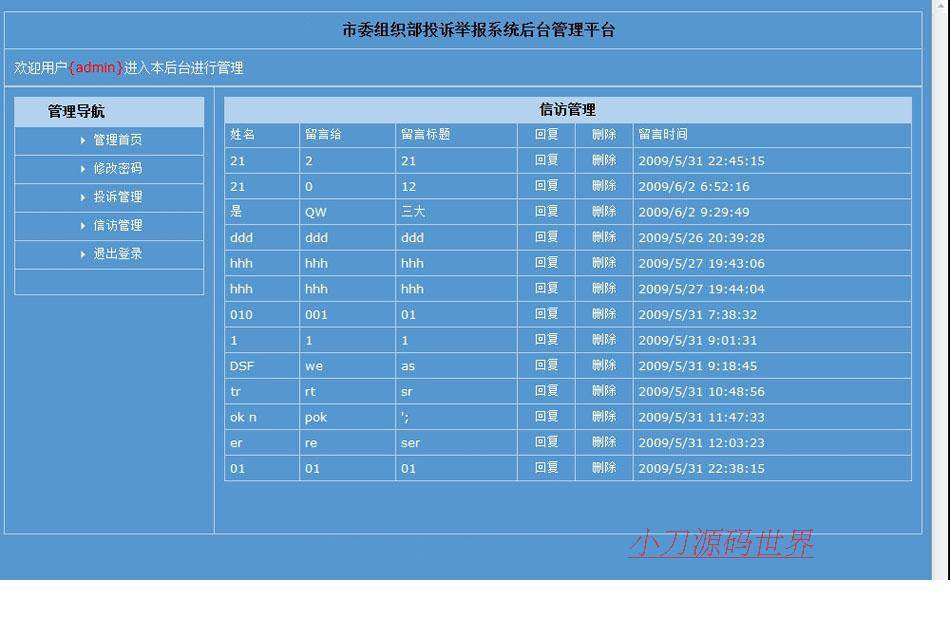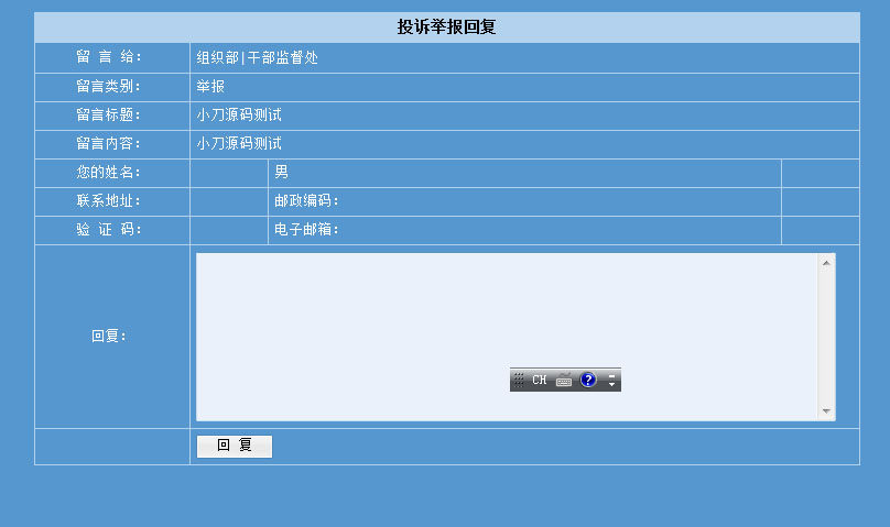 藍(lán)色漂亮 在線投訴舉報(bào)平臺(tái)系統(tǒng)ASP網(wǎng)站源碼XYM443 ASP+ACCESS