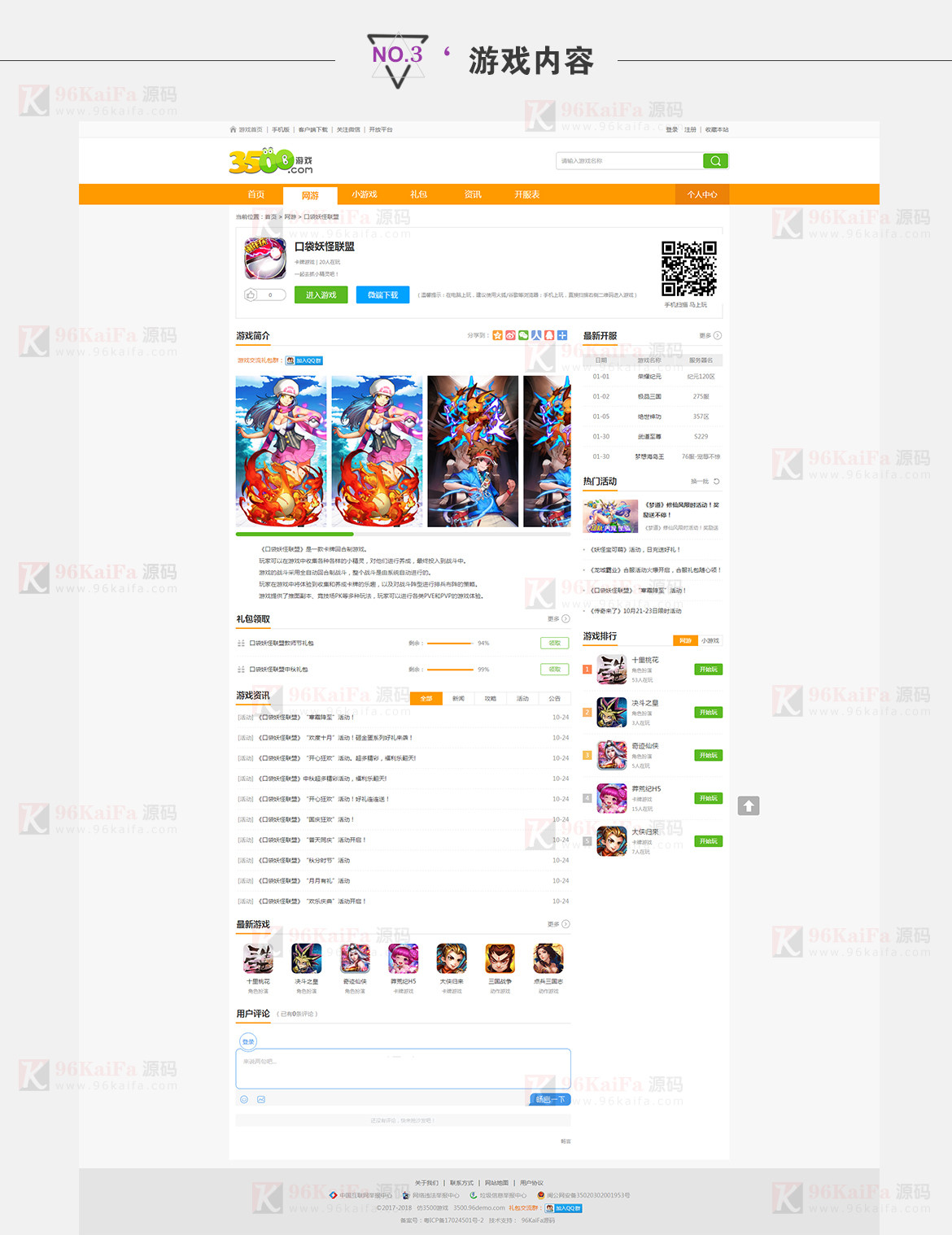 源碼名稱:仿3500游戲站 游戲動漫網(wǎng)站源碼 仿www.3500.com 帝國cms內(nèi)核