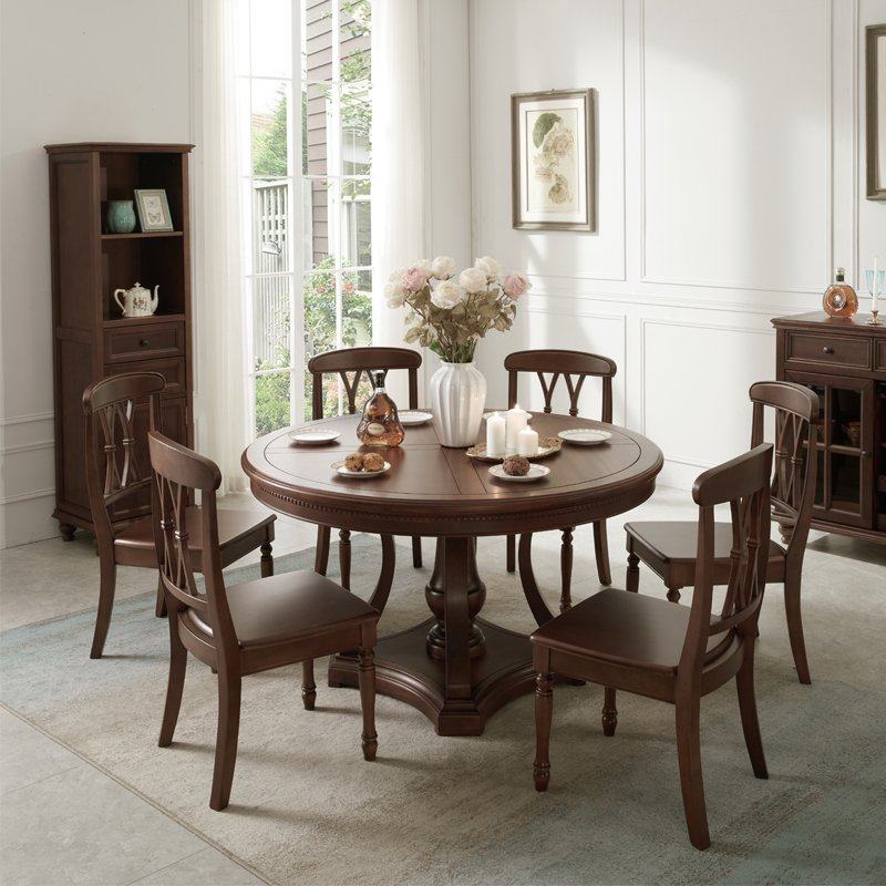 新款美式實木圓桌美式鄉(xiāng)村復古圓形全實木餐桌核桃木家用飯桌家具價格行情