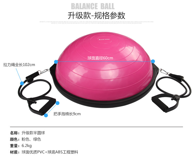 全套產品包括半圓平衡球+拉力繩2根+腳踩充氣泵,收到產品后請和我們客服索取電子教程。