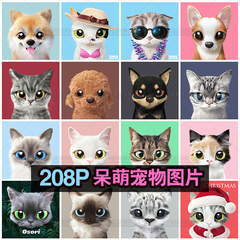 素材名稱:呆萌卡通大眼貓咪狗犬寵物頭像殼貼紙裝飾畫印花圖案設(shè)計(jì)素材