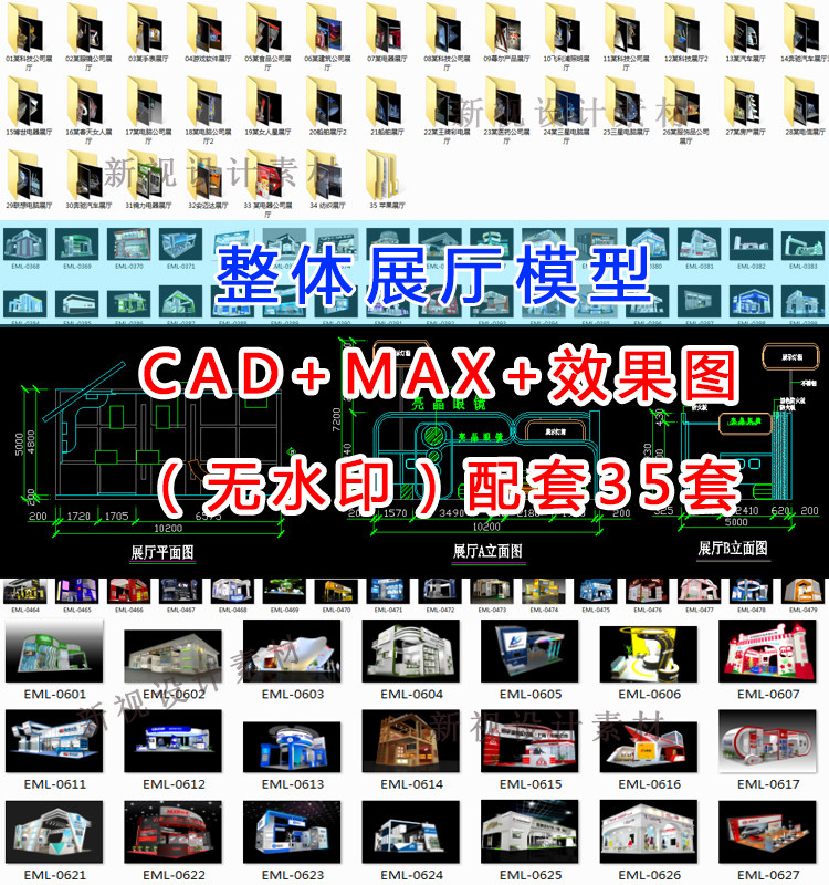 發(fā)下為35套整體展廳 帶CAD+模型+效果圖---