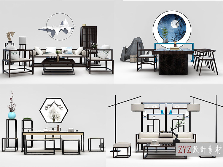 2017新中式3dmax模型室內(nèi)設(shè)計(jì)家具沙發(fā)禪意中式風(fēng)格3d單體模型庫(kù)