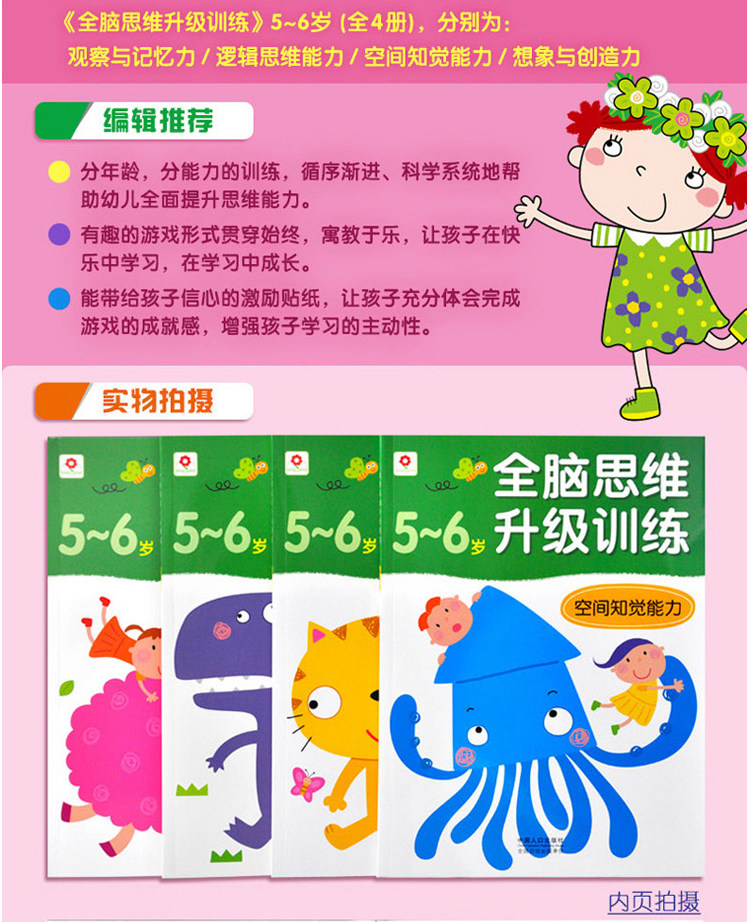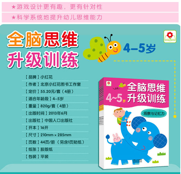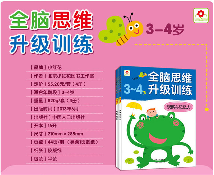 一套4本小紅花全腦思維訓(xùn)練3456歲內(nèi)附貼紙兒童左右腦開發(fā)書推廣熱賣行情