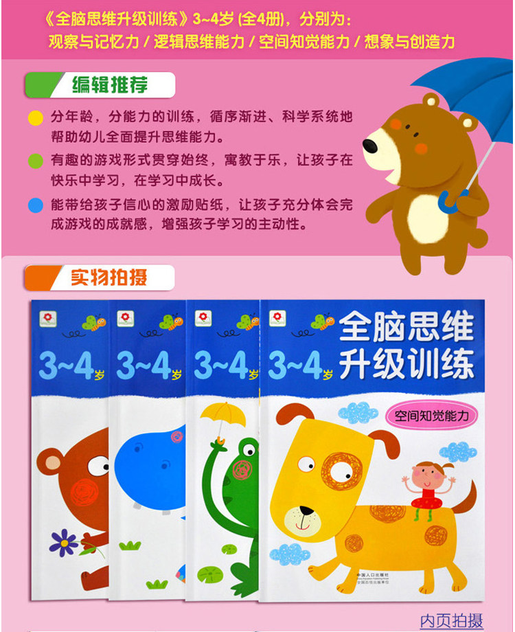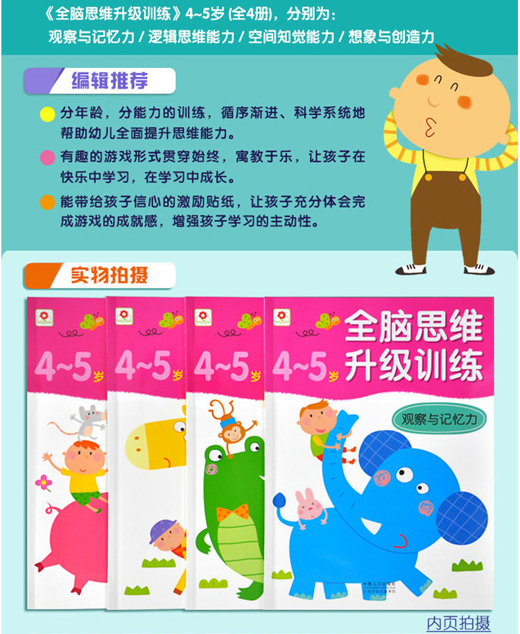 - 顏色分類:全腦思維升級訓(xùn)練3-4歲(全4冊)全腦思維升級訓(xùn)練4-5歲(全4冊)全腦思維升級訓(xùn)練5-6歲(全4冊)3-6歲我愛貼紙全套4本