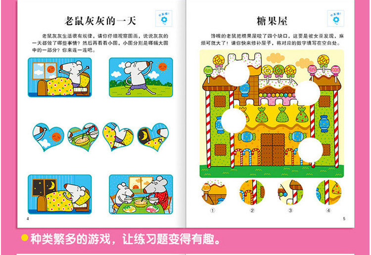 一套4本小紅花全腦思維訓(xùn)練3456歲內(nèi)附貼紙兒童左右腦開發(fā)書
