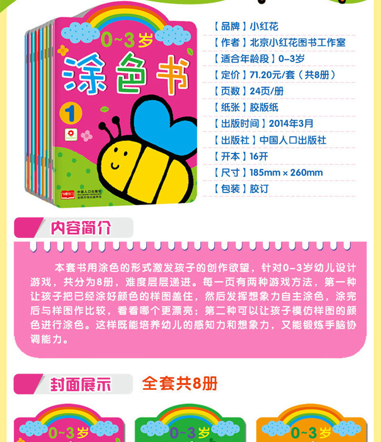 - 顏色分類:小紅花0-3歲8本小紅花3-6歲8本