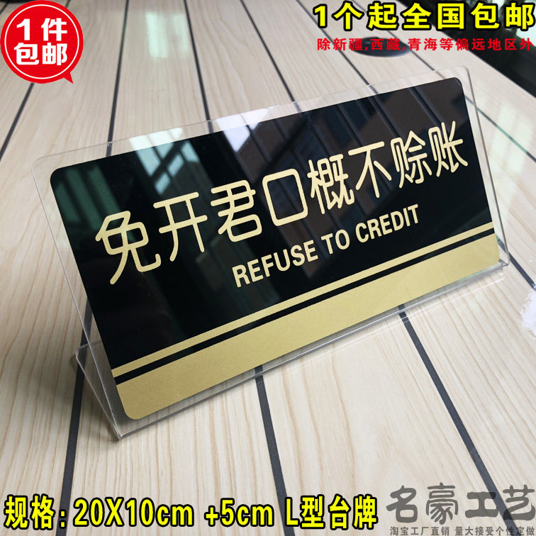 亞克力免開君口概不賒賬溫馨提示牌桌牌商店收銀告示L臺(tái)牌標(biāo)志牌推廣熱賣行情