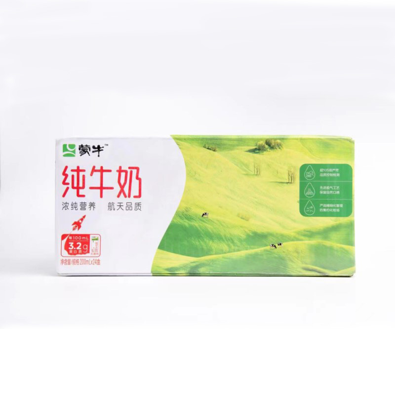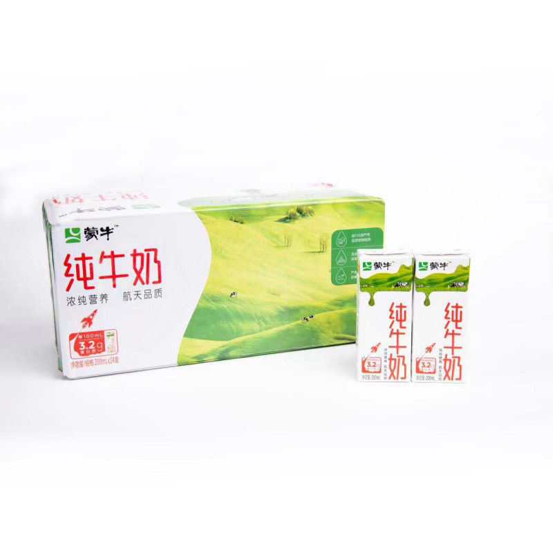 1月新貨蒙牛純牛奶200mL*24盒整箱批特價全脂早餐團購特惠推廣熱賣行情