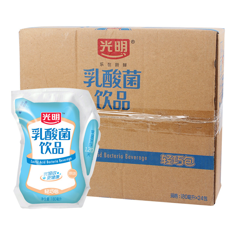 咖啡/麥片/沖飲^含乳飲料^^^廣東 廣州^2月新貨光明牛奶乳酸菌飲品180ml 24袋整箱團購原味營養(yǎng)早餐包郵