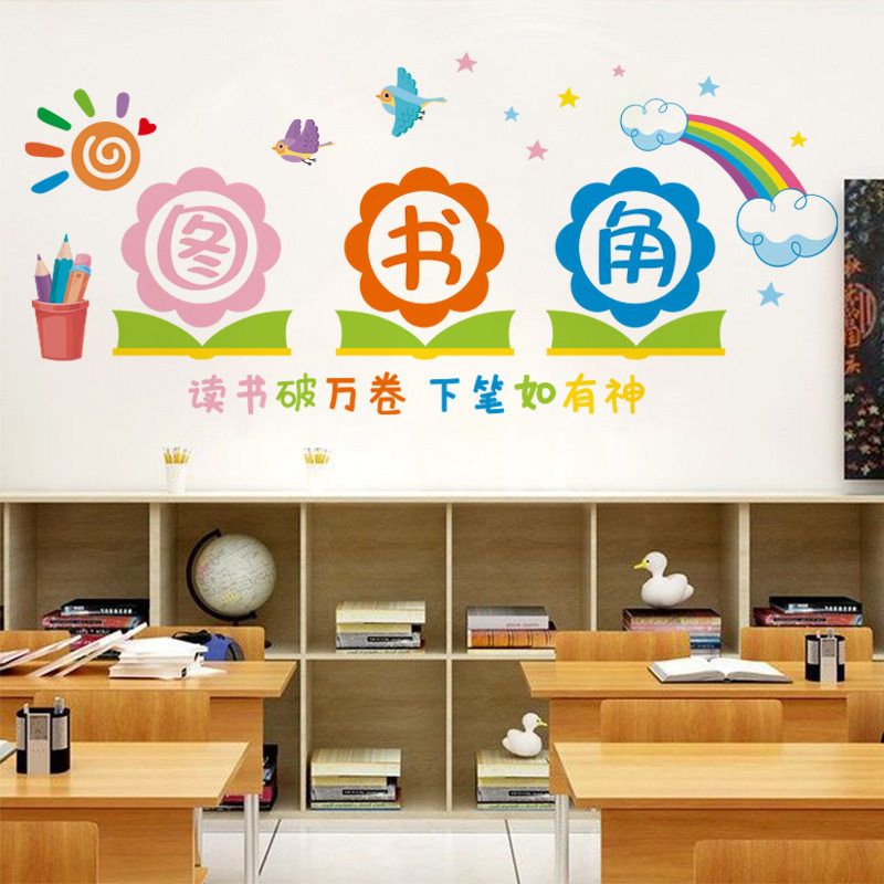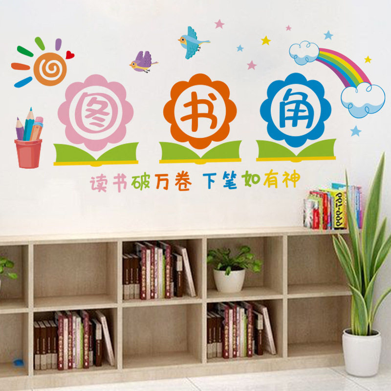 閱讀區(qū)讀書角布置圖書館墻面裝飾貼畫圖書角培訓(xùn)機(jī)構(gòu)文化墻貼書吧推廣熱賣行情