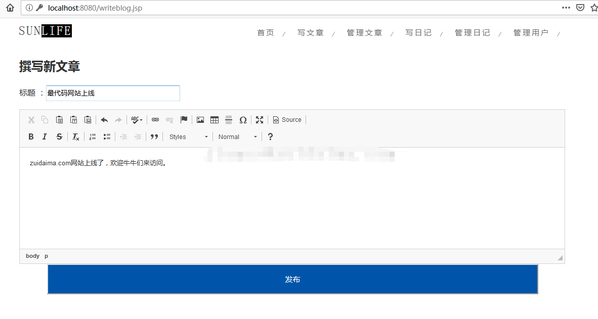 Spring+Spring MVC+Mybatis简单个人博客系统java门户网站CMS web