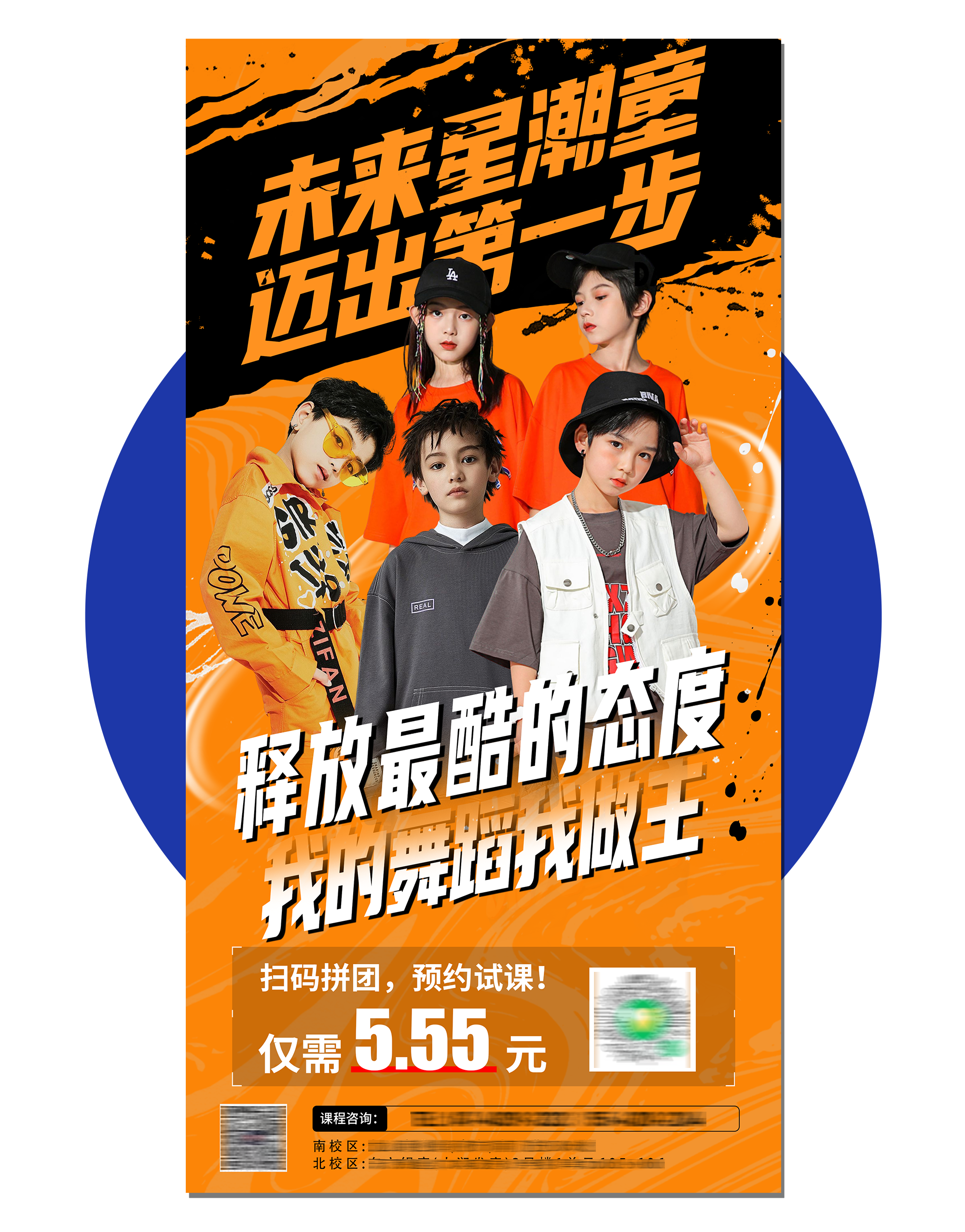 潮流少兒成人街舞團(tuán)購活動宣傳海報設(shè)計模板PSD源文件