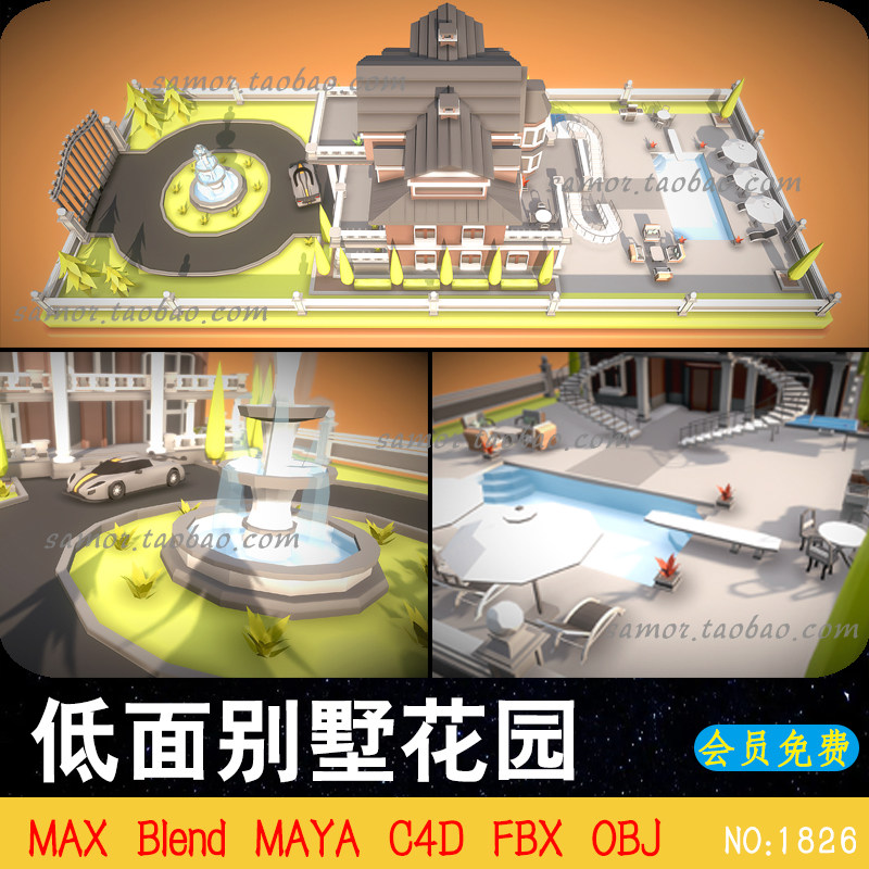 G758-C4D/MAYA/3DMAX三維素材 低面花草樹木植物石頭 3D模型素材推廣熱賣行情