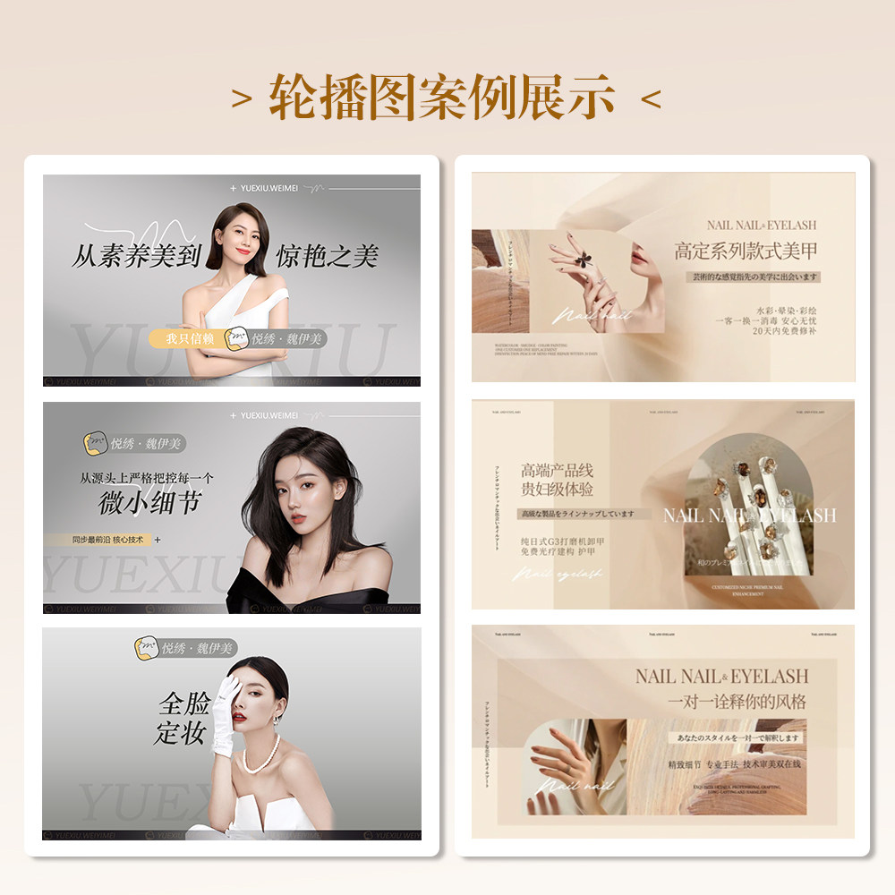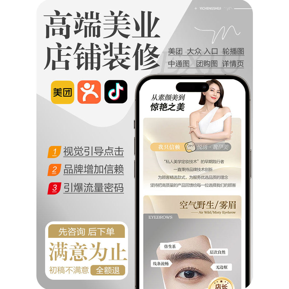 美團(tuán)店鋪裝修大眾點評圖片設(shè)計五連輪播詳情抖音團(tuán)購頭圖美業(yè)海報價格行情