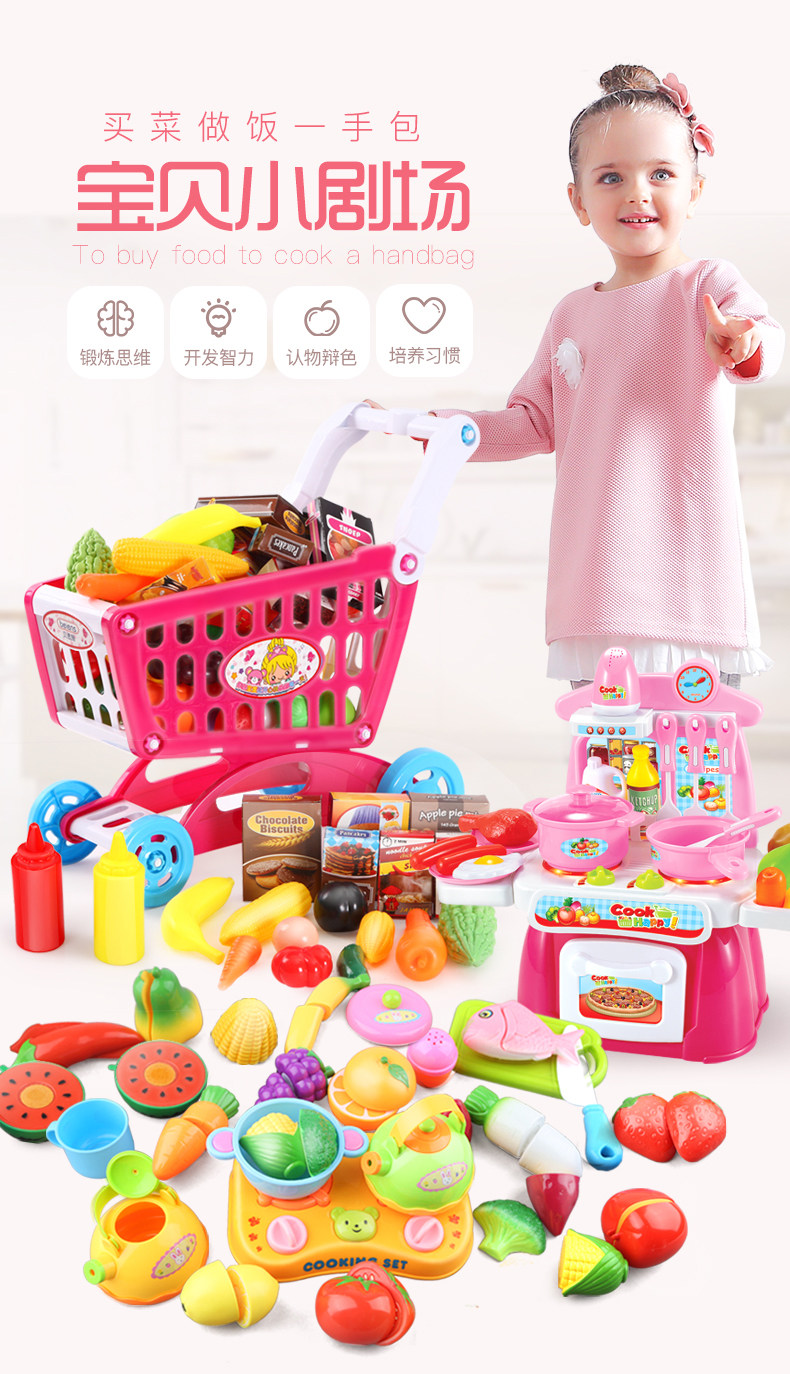 貝恩施兒童購物車玩具女孩 超市推車過家家寶寶迷你廚房玩具套裝.價格行情