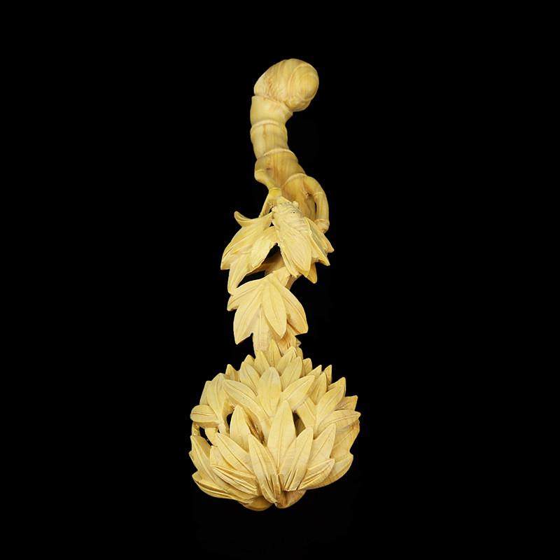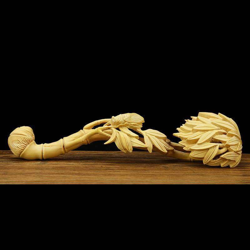 黄杨木雕摆件客厅收藏品木头工艺品雕刻如意手把件根雕手工创意价格行情