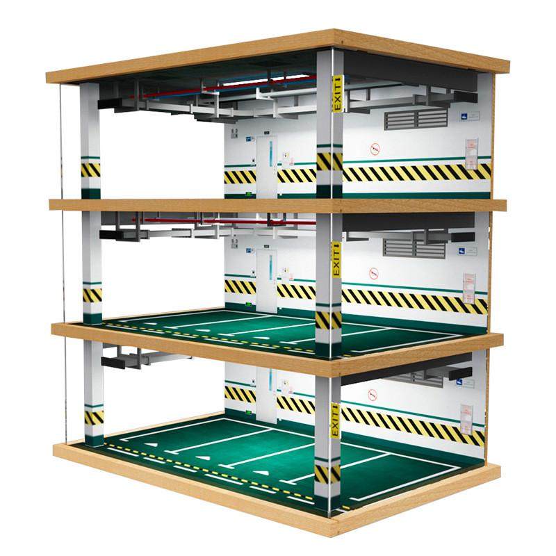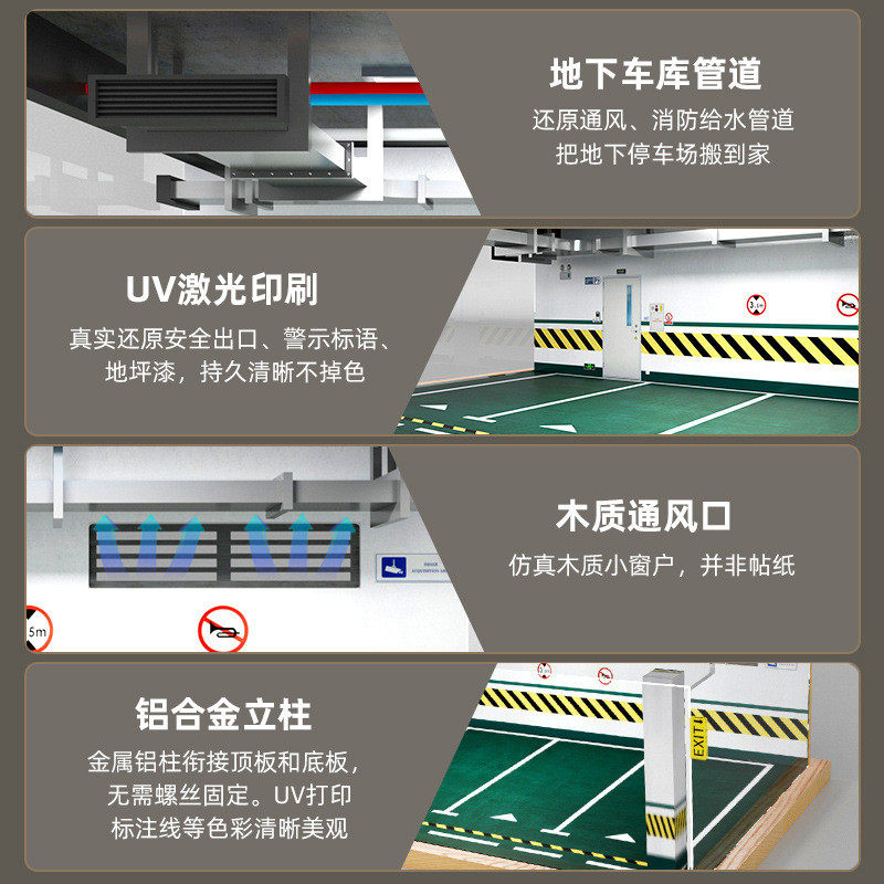 卡美卡库1:24仿真停车场模型场景管道款灯光车库摆件汽车模型收藏推广热卖行情