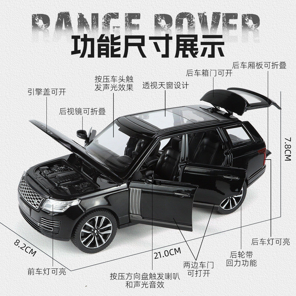 泡沫盒奇艺1:24路虎揽胜50周年仿真合金模型声光回力六开门收藏摆