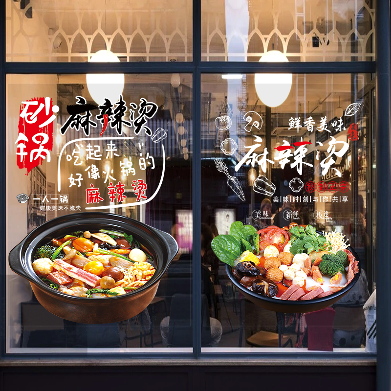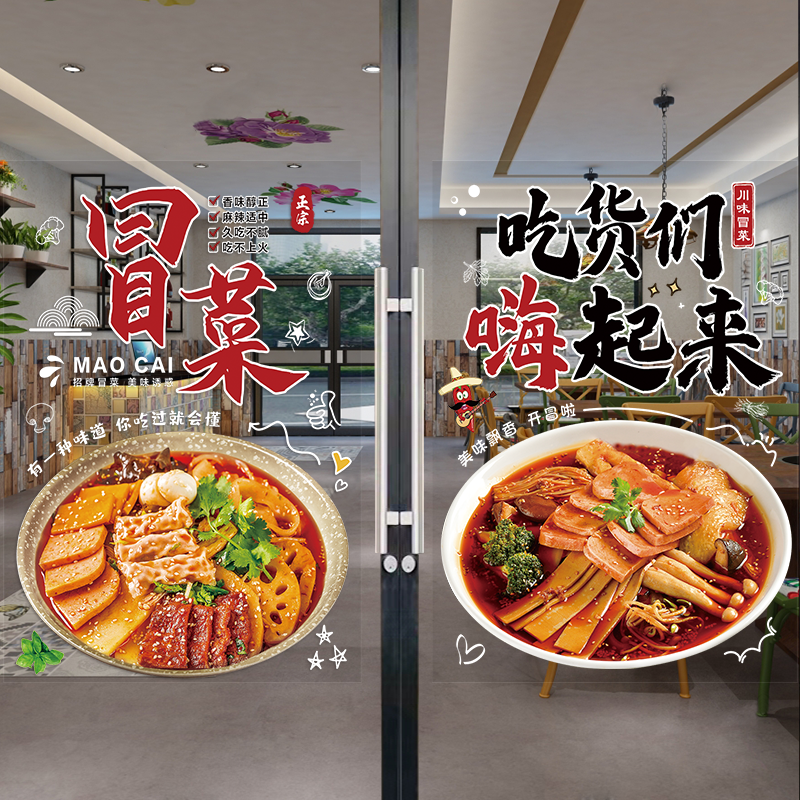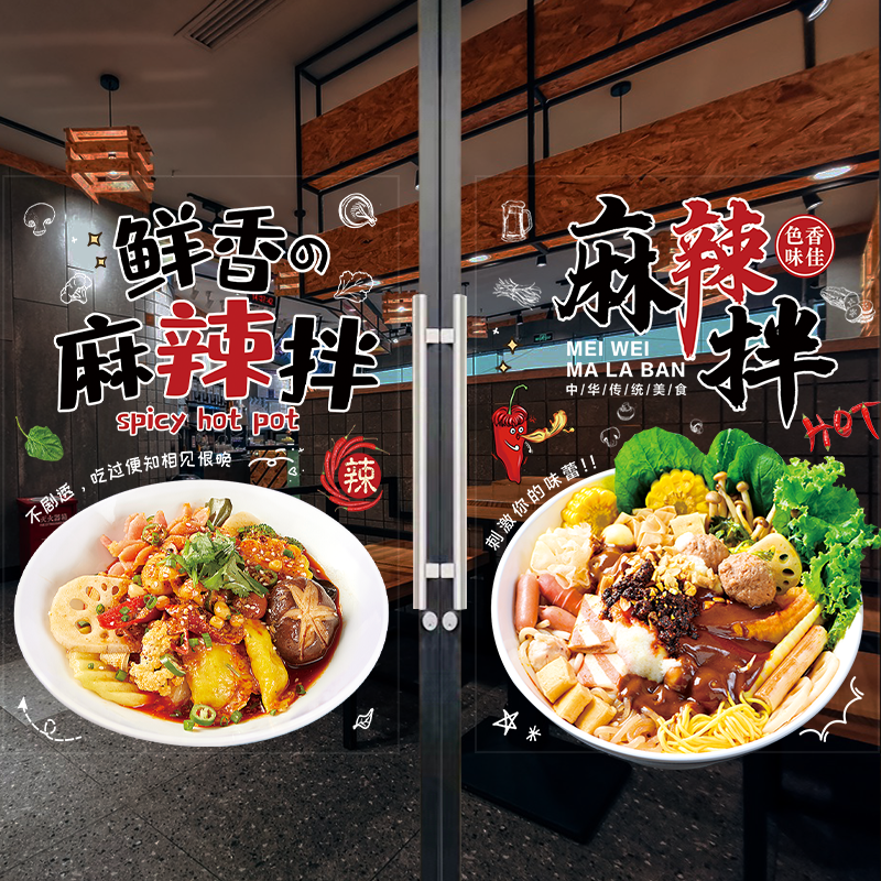麻辣拌麻辣燙冒菜小吃店鋪玻璃門貼紙海報(bào)裝飾櫥窗廣告宣傳墻貼畫推廣熱賣行情