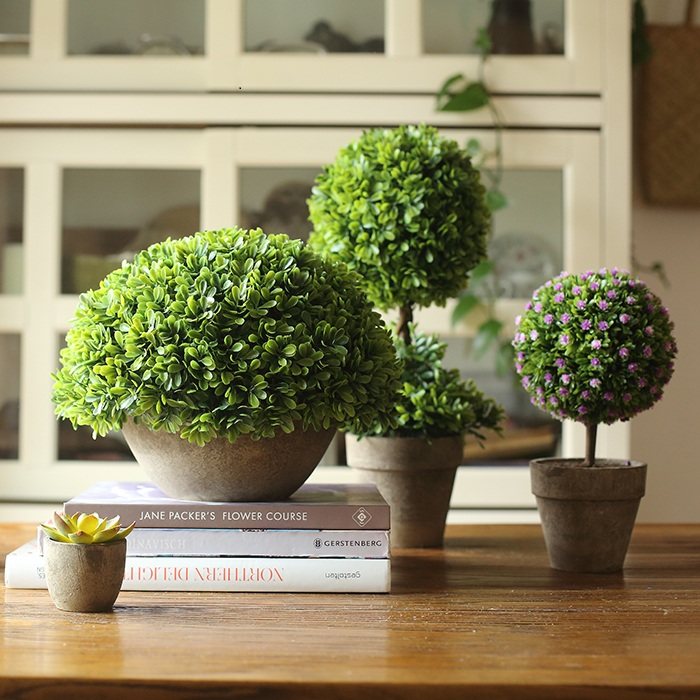 【掬涵】仿真树球盆景 咖盆 绿植盆栽 花球草球桌面餐桌装饰品推广热卖行情